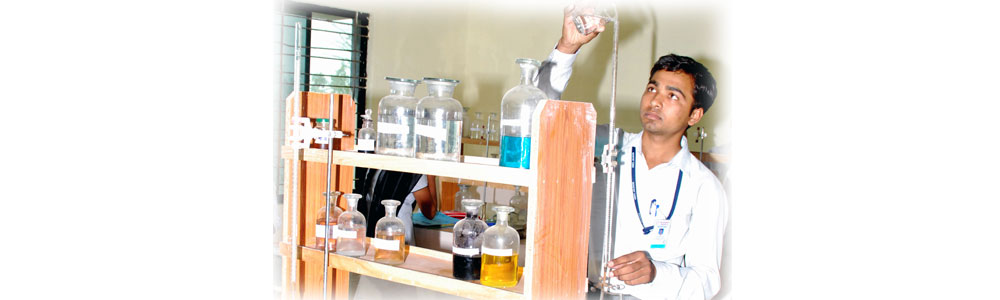The Applied Chemistry section offers a curriculum exhibiting an advanced level of understanding of the principles of chemistry and their applications to problem solving in Engineering. The section offers courses in Engineering Chemistry and Environmental Chemistry including Polymers, Refractory, Corrosion, Engineering Materials, Waste Water Chemistry, Lubrication and Instrumentation. The chemistry lab is equipped with viscometric & pH-metric analysis setups, electronic chemical balances, electric oven, and distillation plant.